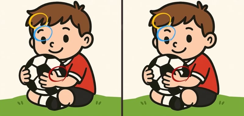 Voor je zie je twee plaatjes met een jongen en een voetbal. Er zitten drie verschillen in verborgen en het is jouw taak om die in slechts 49 seconden te vinden.